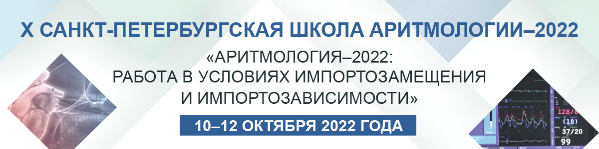 Приглашаем принять участие в работе X Санкт-Петербургской школы аритмологии–2022 (X Всероссийской школы с международным участием), которая состоится 10–12 октября 2022 года.