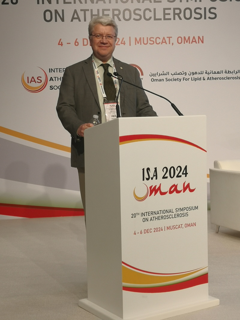 4-6 декабря 2024 в Muscat (Oman) состоялся 20th International Symposium on Atherosclerosis. Это традиционный конгресс International Atherosclerosis Society, который проводится каждые три года в разных странах мира, и в этом году он проходил при поддержке Oman Society for Lipid & Atherosclerosis. Основная тема мероприятия “Towards Prevention of Cardiometabolic Diseases through Precision Medicine”. Сопредседателями конгресса выступили Peter Libby, President IAS (USA) и Khalid Al Rasadi, President OSLA (Oman).