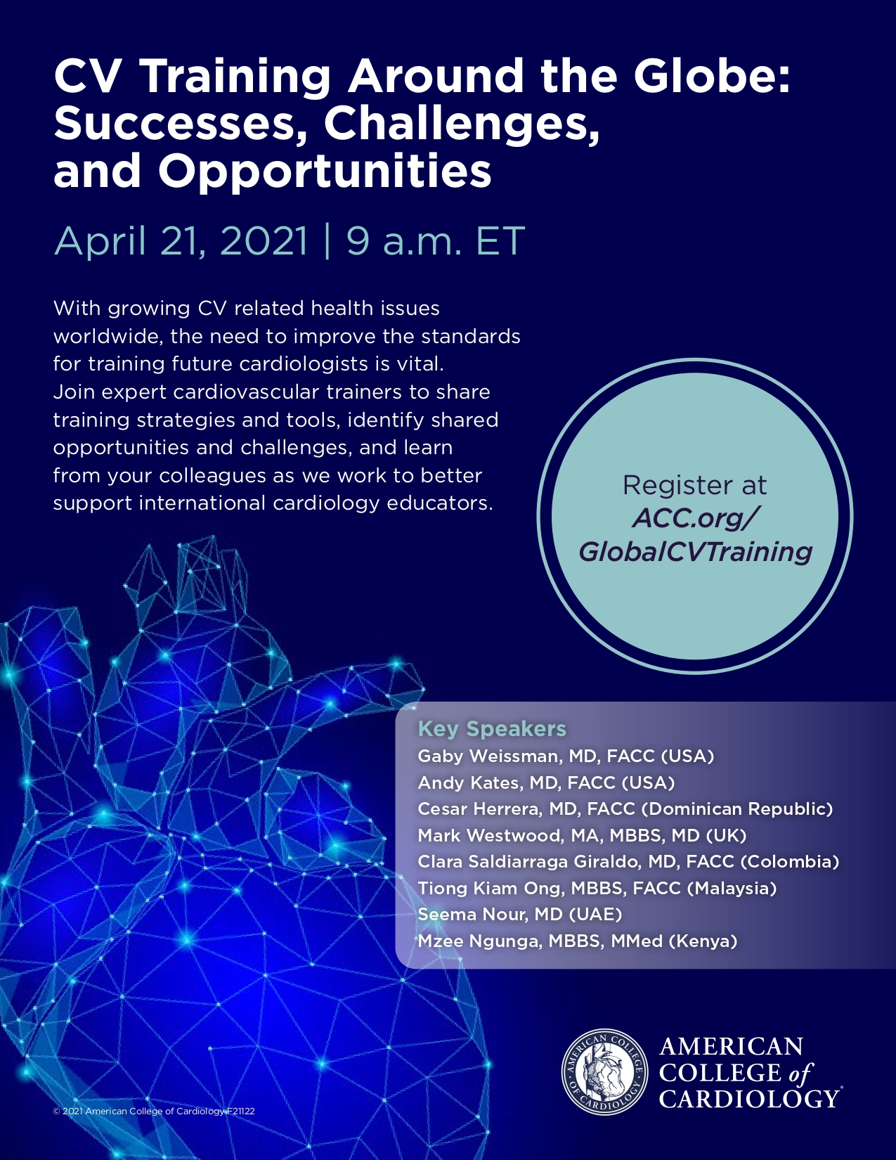 Join the webinar of the American College of Cardiology on CV Training Around the Globe: Successes, Challenges and Opportunities