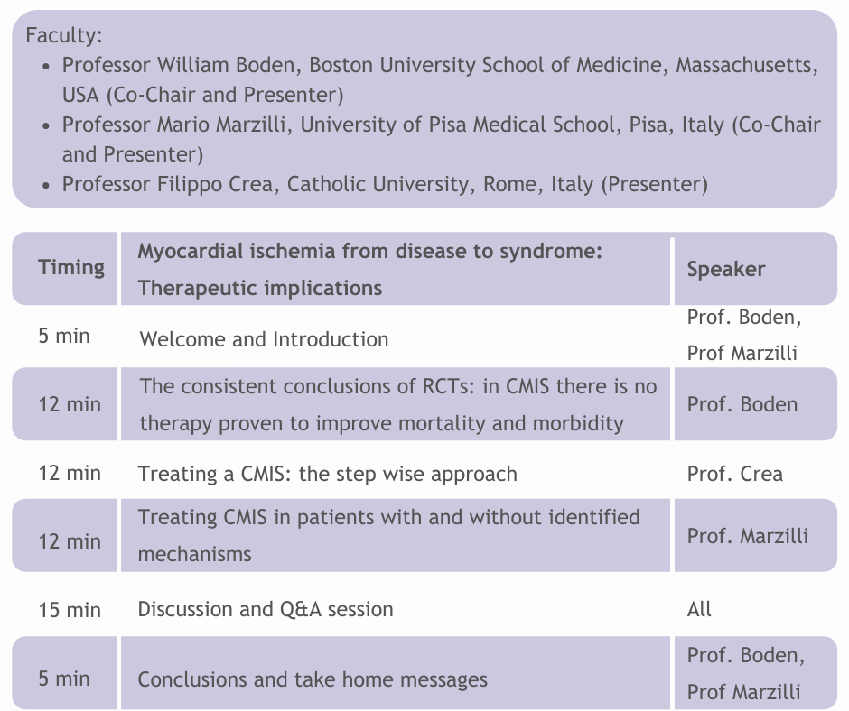 Webinar: Myocardial ischemia from disease to syndrome: Therapeutic implications