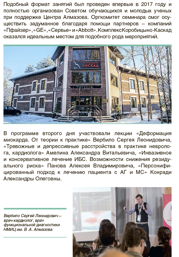 Данный семинар проходит не в первый раз и становится традиционным. Семинар пользуется популярностью среди врачей, так как на нем обсуждается мультидисциплиннарный подход к профилактике, диагностике и лечению кардиологических заболеваний. Участники мероприятия смогут освоить навыки УЗИ-диагностики на предоставленных нашими партнерами аппаратах.
