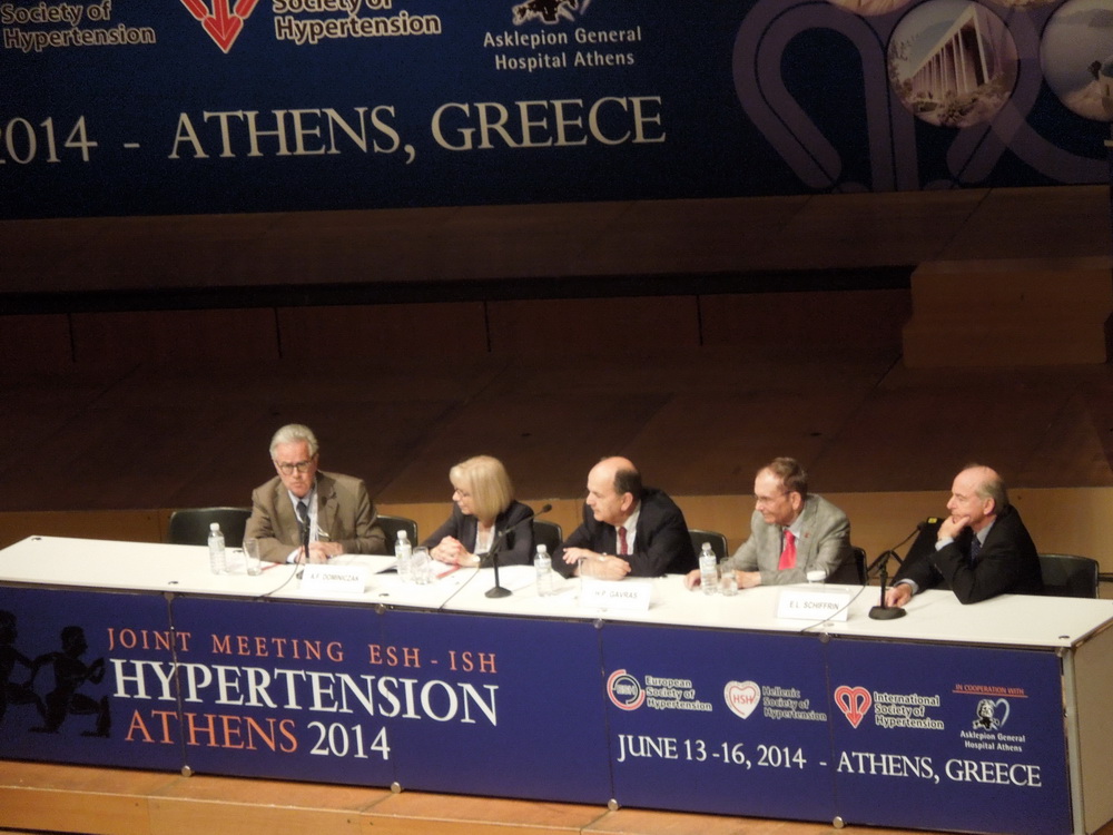 С 13 по 16 июня 2014 года в Афинах (Греция) проходил очередной, 24-й, ежегодный конгресс по артериальной гипертензии (АГ) и профилактике сердечно-сосудистых заболеваний, который проводится совместно Европейским обществом по артериальной гипертензии (European Society of Hypertension, ESH) и Международным обществом по артериальной гипертензии (International Society of Hypertension, ISH). Конгресс посетили специалисты из 87 стран, ФГБУ «Федеральный медицинский исследовательский центр имени В.А. Алмазова» Минздрава России (далее Центр) представляла большая делегация во главе с заместителем директора по научной работе, д.м.н., профессором Конради Александрой Олеговной и ученым секретарем Центра, д.м.н., профессором Недошивиным Александром Олеговичем.