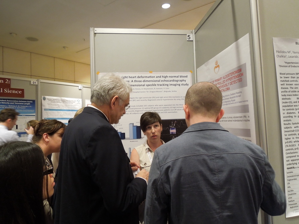 Необходимо отметить, что в этом году увеличилось число устных докладов, представленных российскими учеными. Помимо доклада А.О. Конради, необходимо отметить выступление сотрудника Центра проф. Е.И. Барановой (Санкт-Петербург), представившей результаты масштабного ретроспективного анализа причин развития фибрилляции предсердий. В устных сессиях участвовали и представители из других городов России. Главный кардиолог Минздрава России И.Е. Чазова (Москва) доложила некоторых аспекты эпидемиологии сердечно-сосудистых факторов риска в странах Восточной Европы и в России. Доклад О.М. Драпкиной (Москва) был посвящен особенностям поражения органов-мишеней у лиц с артериальной гипертензией и хронической сердечной недостаточностью с сохранной фракцией выброса. Среди москвичей в устных сессиях участвовали профессор Д.В. Небиеридзе, О.Ю. Агапова. С.Е. Пекарский (Томск) выступил с результатами исследования по ренальной денервации. Д.О. Панов (Новосибирск) представил данные о влиянии стресса в семье на развитие артериальной гипертензии у женщин по результатам длительного проспективного исследования MONICA (руководитель – профессор В.В. Гафаров). Об экономических аспектах лечения артериальной гипертензии в России доложила профессор Е.И. Тарловская (Киров).