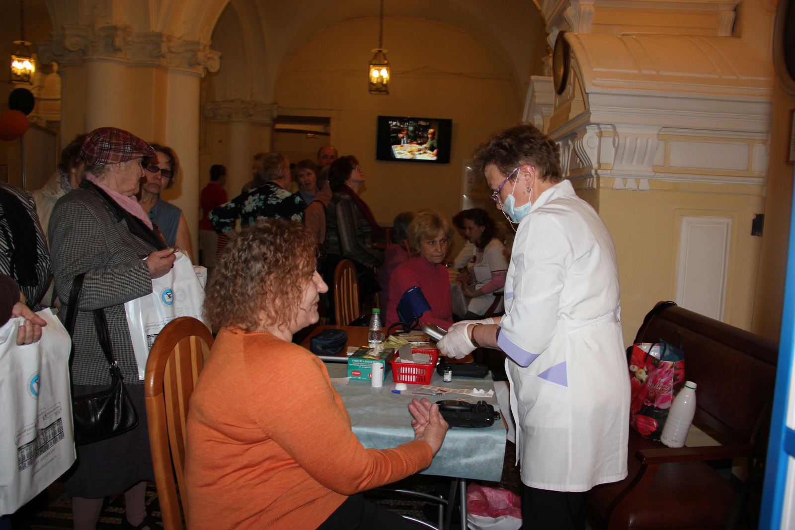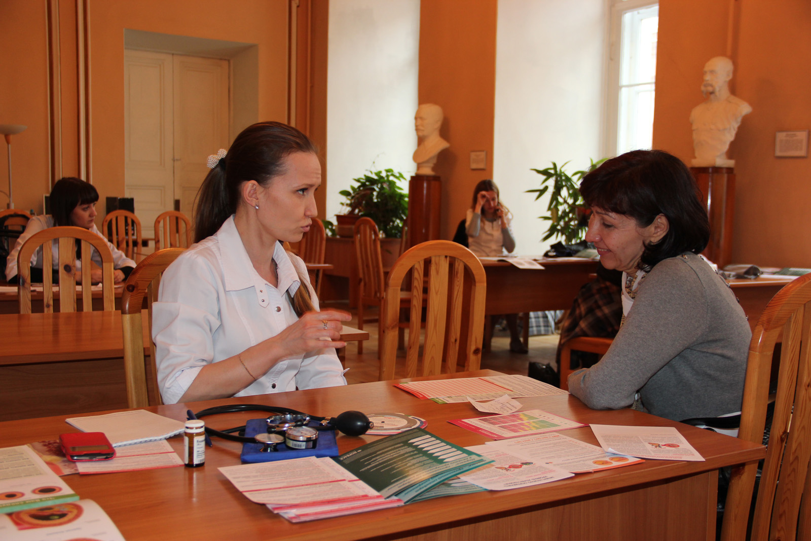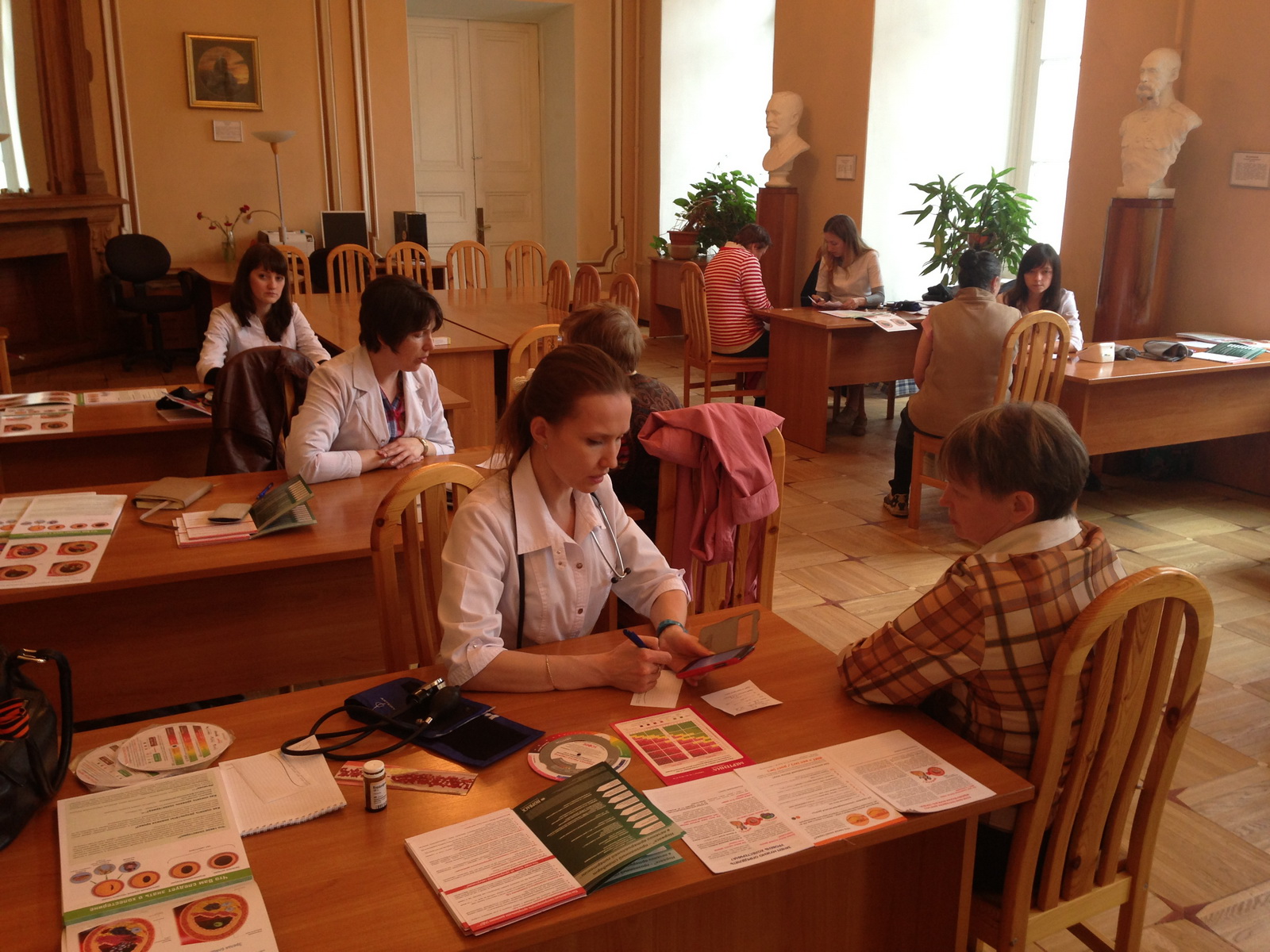 После получения результатов анализов крови, участникам акции измерялось артериальное давление. Каждый смог получить исчерпывающую информацию от специалистов-кардиологов о том, как трактовать показатели своего давления, о правилах его измерения и дальнейших действиях, которые необходимо предпринять для его коррекции. Пациентам выдавались дневники для самоконтроля артериального давления в домашних условиях, а также специальная литература.