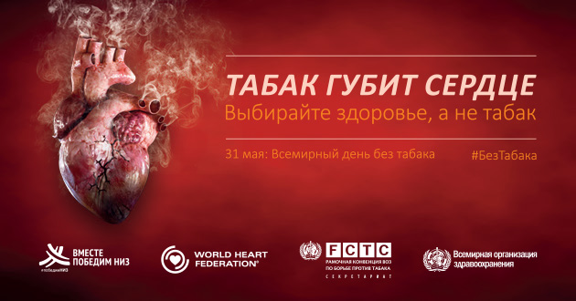 Тема Всемирного дня без табака 2018 года – «Табак и болезни сердца». Кампания будет направлена на повышение осведомленности в отношении: