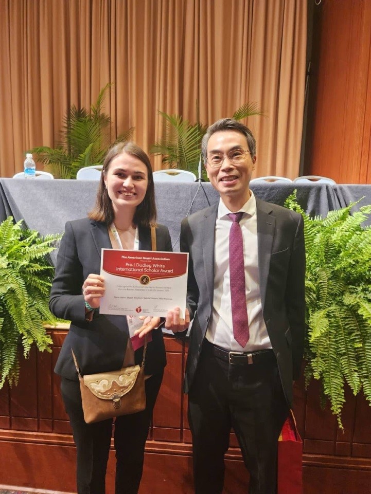 Президент Американской ассоциации сердца Joseph C. Wu вручает награду Д.Р.Хастиевой