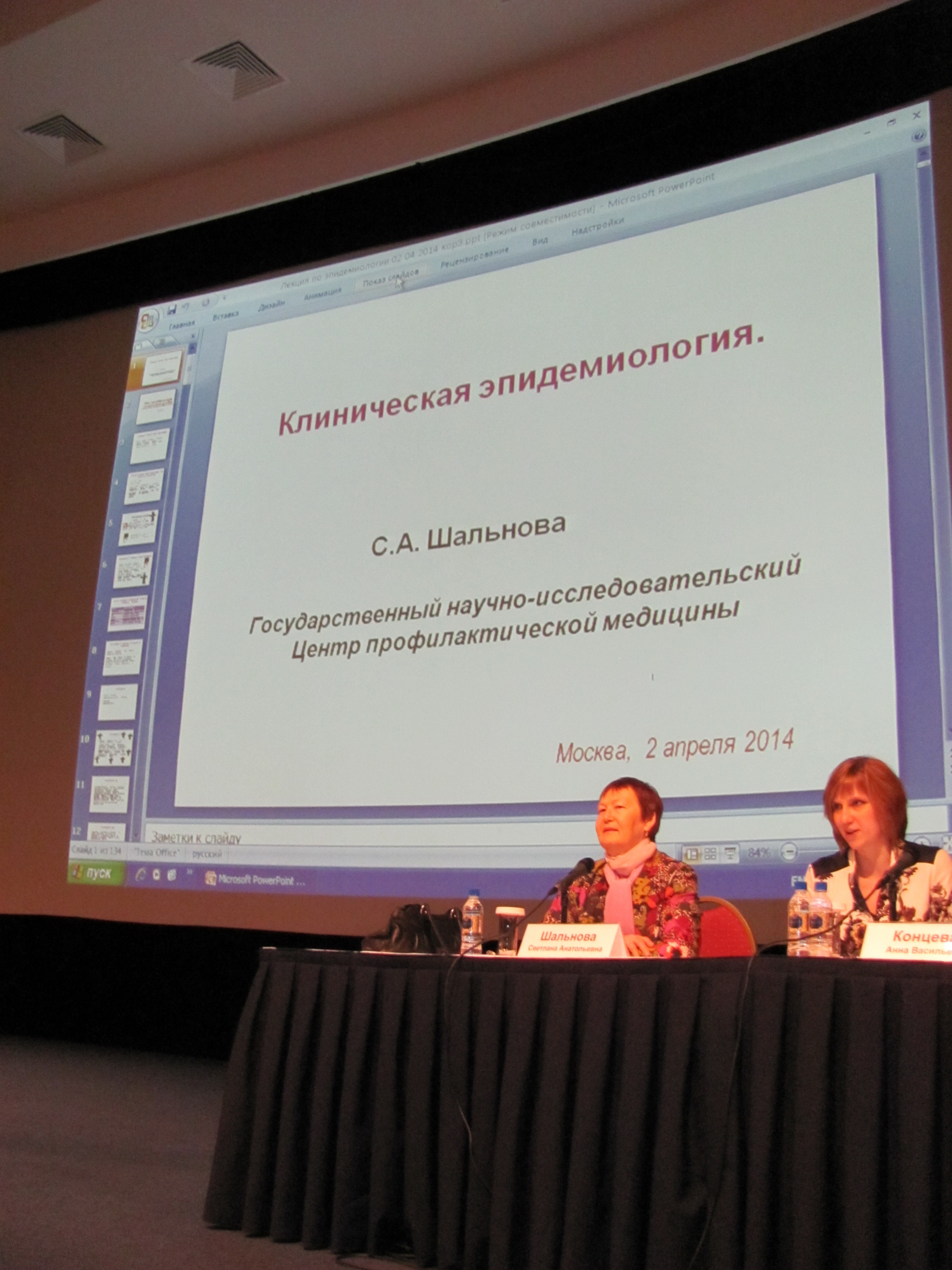Первое выступление профессора Шальновой СА, руководителя отдела эпидемиологии ХНИЗ ФГБУ ГНИЦ Профилактической медицины Минздрава России, «Клиническая эпидемиология – лекция для научных сотрудников младшего возраста».