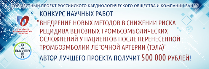 РКО и компания Bayer объявляет Конкурс научных работ в области "Тромбоэмболии лёгочной артерии (ТЭЛА)".