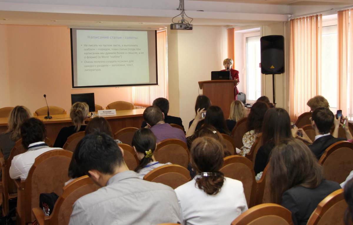 Школа началась с мастер-класса по развитию навыков исследователя, который представила Конради А.О. (заместитель директора по научной работе СЗФМИЦ Минздрава, Санкт-Петербург). В презентации «Как опубликовать статью в международном журнале?» Александра Олеговна осветила проблемы, с которыми встречается каждый научный сотрудник: как построить международную публикацию, как выбрать журнал, как правильно ответить на рецензию и многие другие.