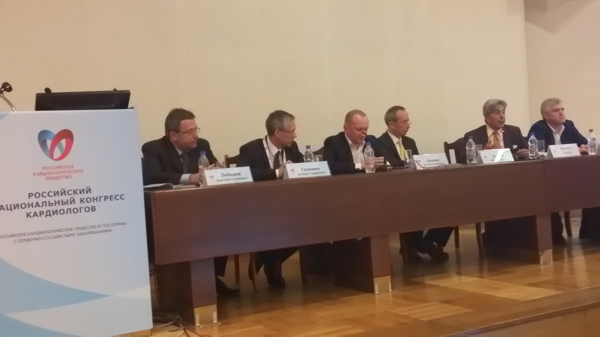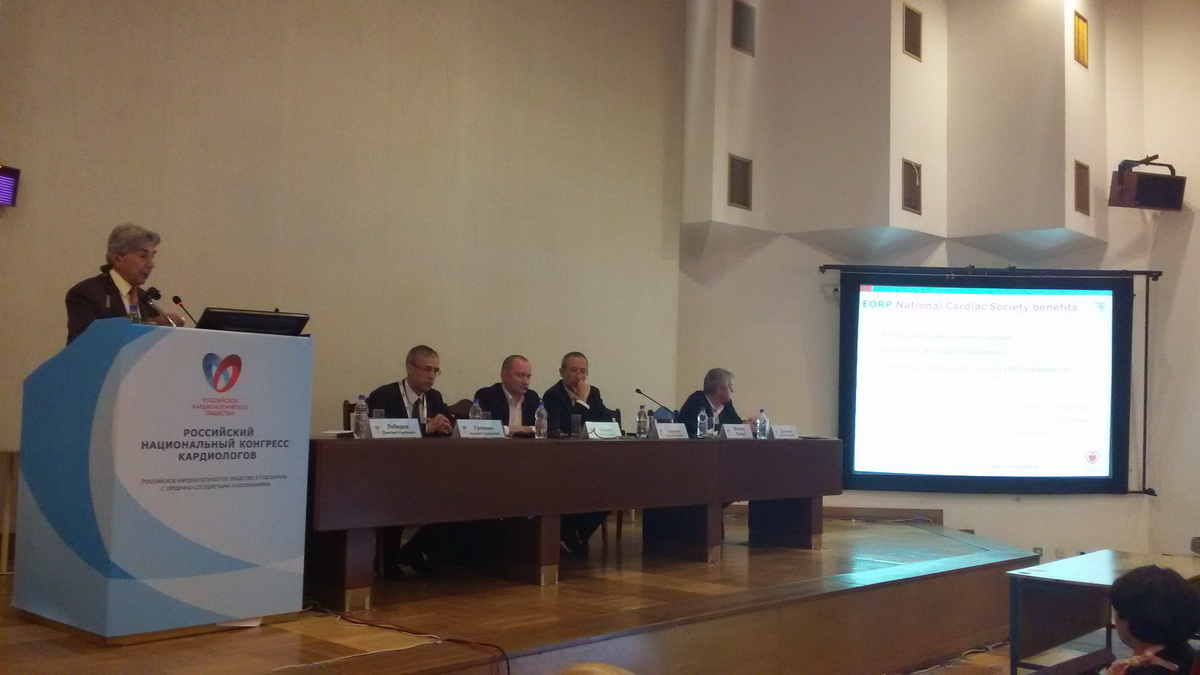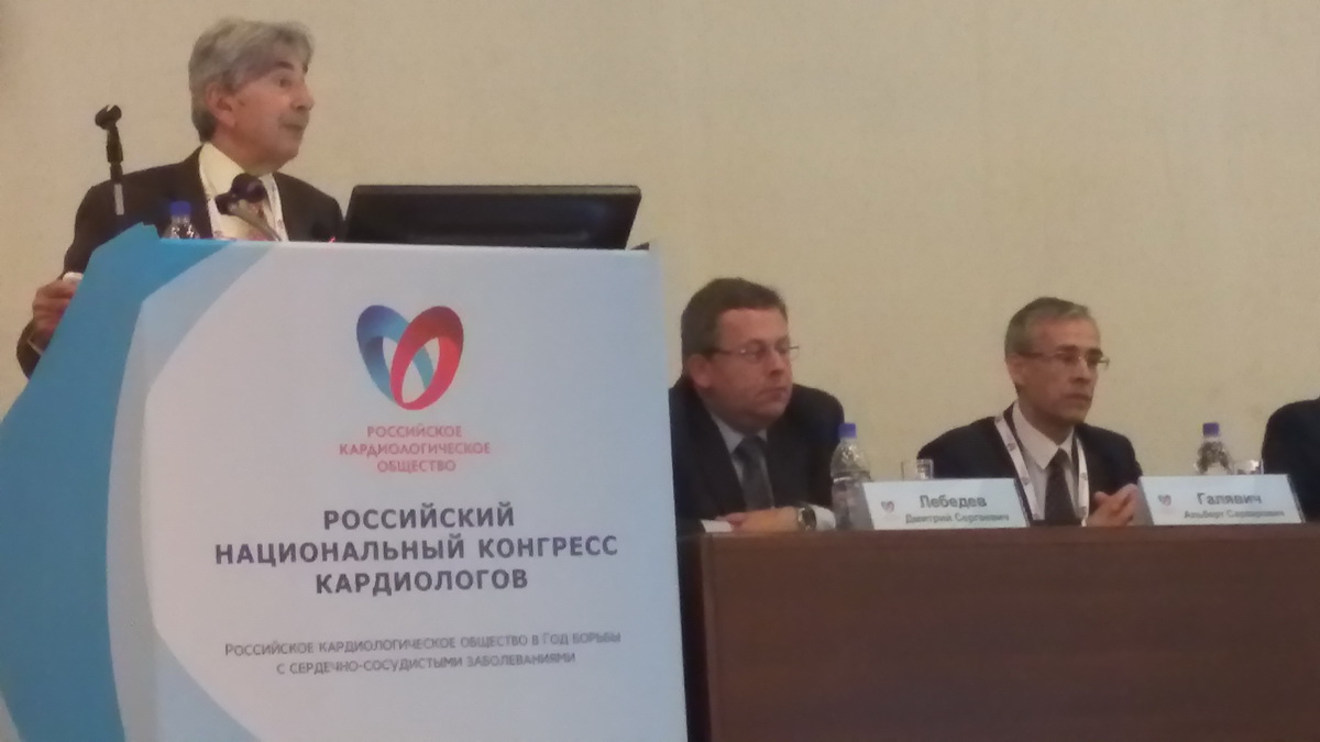В последующие дни Конгресса продолжалась активная научная работа, было много сессий и тематических заседаний, представляющих интерес для молодых исследователей. На наш взгляд, одним из наиболее увлекательных и интересных стал международный симпозиум, посвященный участию Российского кардиологического общества в Европейских наблюдательных исследованиях и регистрах. Эта тема в настоящее время заслуживает самого пристального внимания, так как регистры охватывают наиболее значимые с социально-эпидемиологической и экономической точки зрения заболевания – острый коронарный синдром, фибрилляция предсердий и хроническую ишемическую болезнь сердца. С первым докладом выступил профессор Роберто Феррари, который является координатором подобной инициативы в Европейском обществе кардиологов. Он представил первые результаты длительного наблюдения пациентов из разных Европейских регионов и возможные направления дальнейшего развития проекта. Неожиданными явились предварительные выводы, что, по данным регистров, только половина пациентов в Европе достигают целевых значений АД, уровня холестерина на фоне лечения и получают необходимую терапию в полном объеме, к примеру, антикоагулянты при ФП. Тем не менее, формирование регистров исходно было направлено на получение реальных данных из различных стран, чтобы оценить действительную ситуацию и на основании этого оптимизировать подходы к терапии.