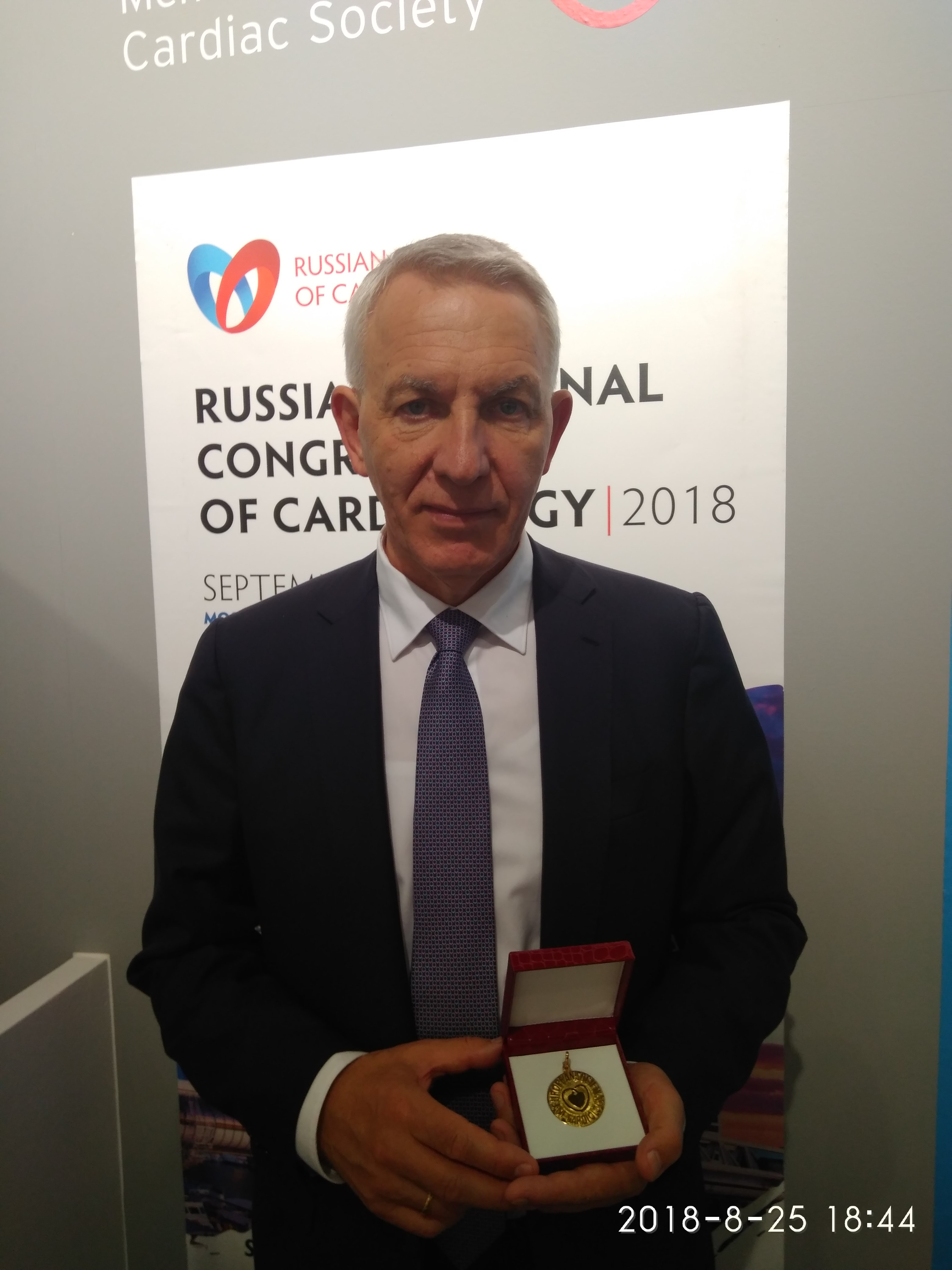 Президент РКО Е.В.Шляхто награжден золотой медалью Европейского кардиологического общества