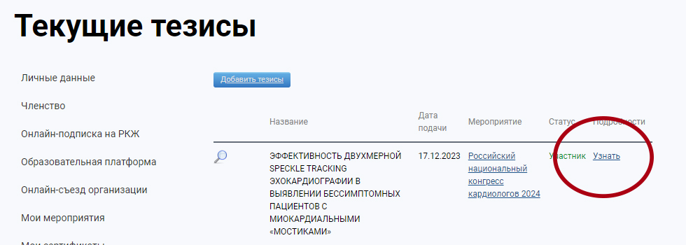 Cтатус тезисов в личном кабинете