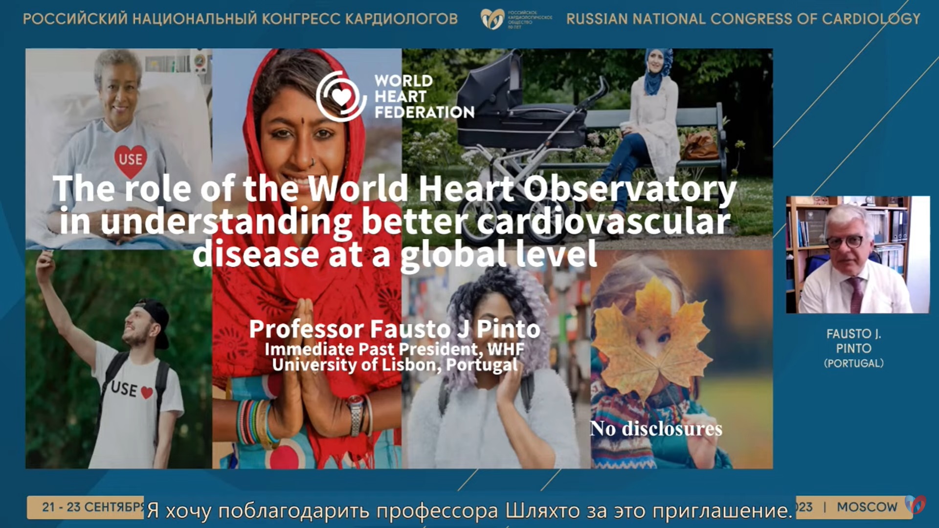 Деловую программу торжественного открытия продолжил доклад нашего португальского коллеги Фаусто Пинто на тему: Роль платформы World Heart Observatory для лучшего понимания сердечно-сосудистых заболеваний на глобальном уровне.